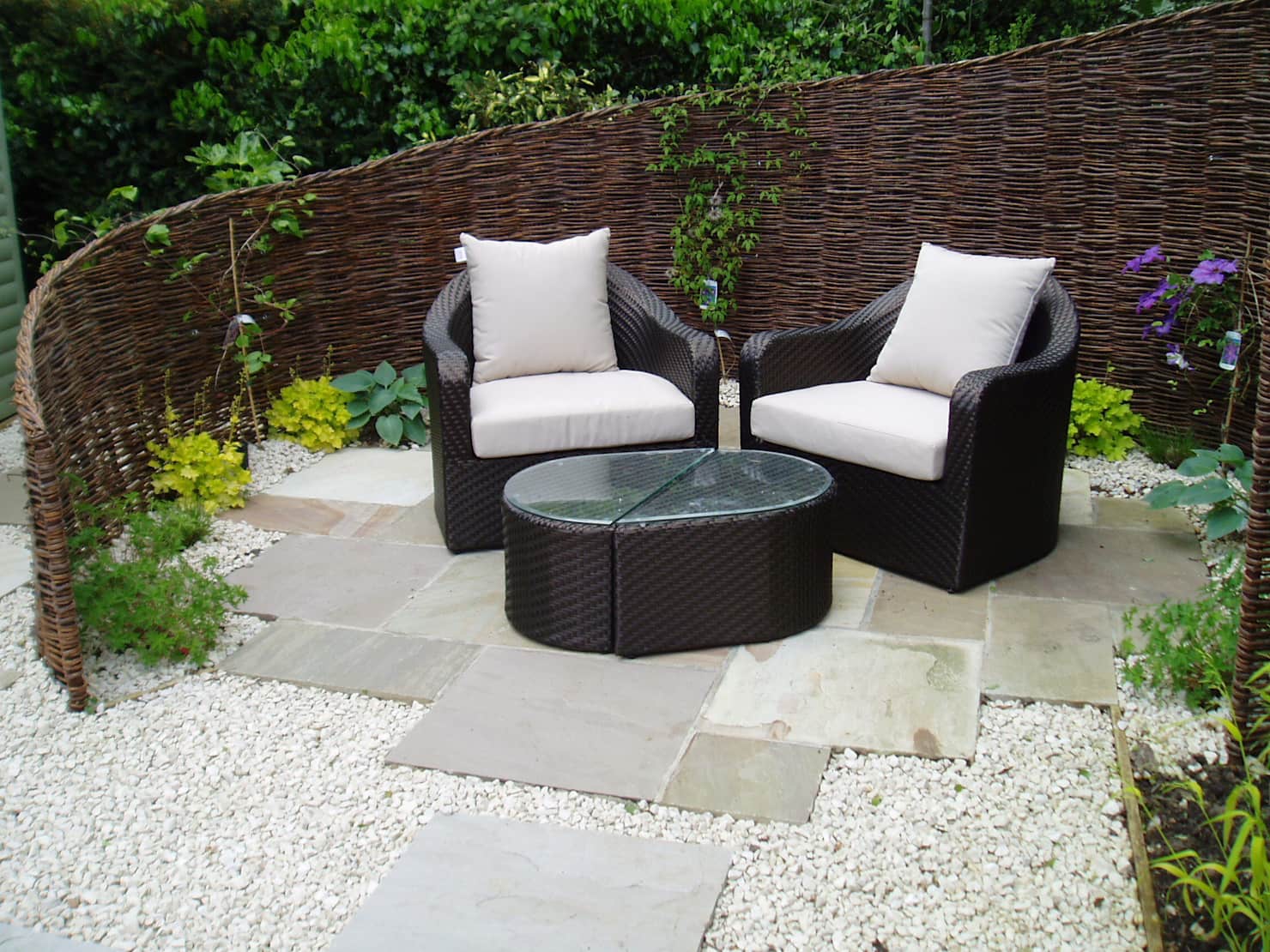 這一款并不是理解中的那種圍欄,它更像是用來劃分庭院空間的隔斷設(shè)計。搭配藤制藝術(shù)家具,偏安庭院一隅,享受自在天地。