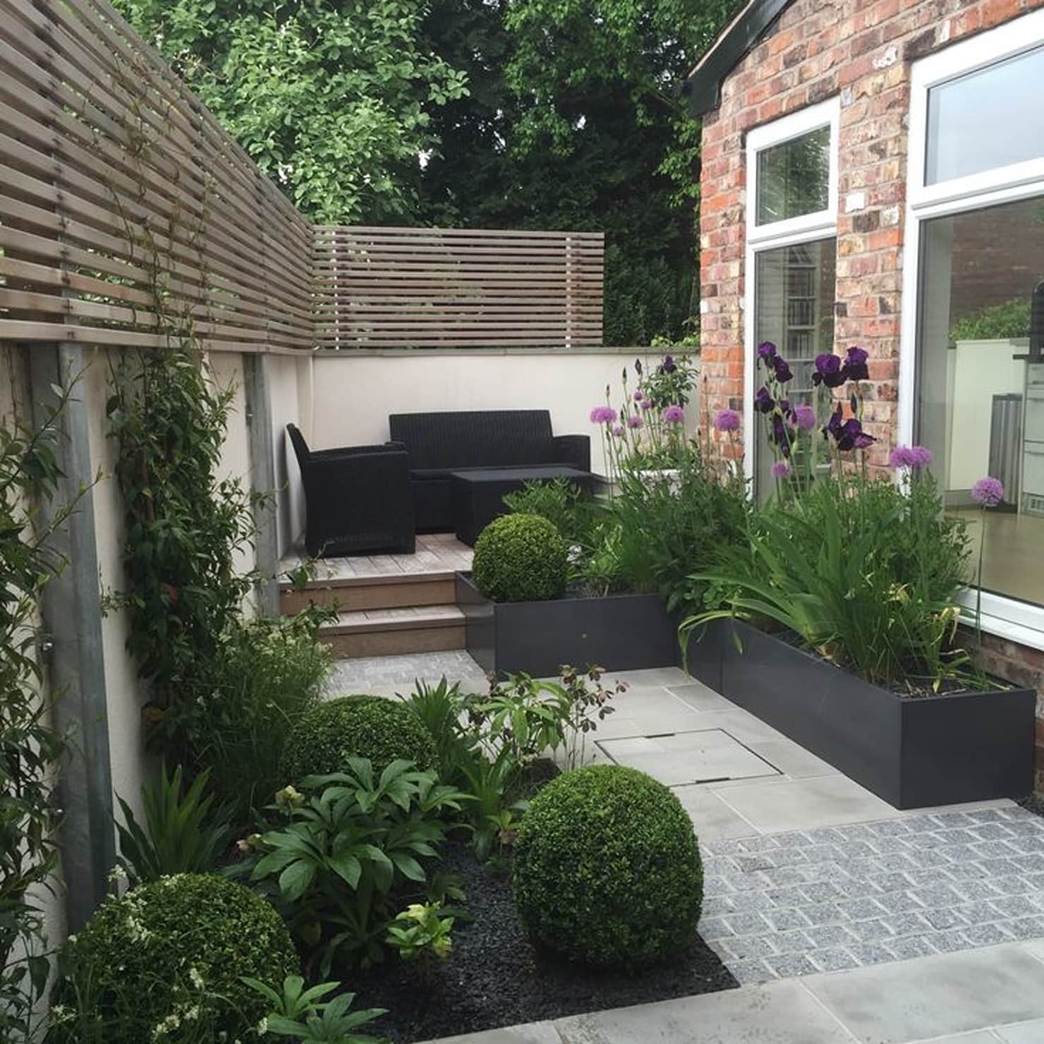 別看這款圍欄“黑乎乎”的,但這深色的調(diào)調(diào)搭配周圍頗具東方色彩的庭院,竟然營造出意象鮮明的獨特韻味。