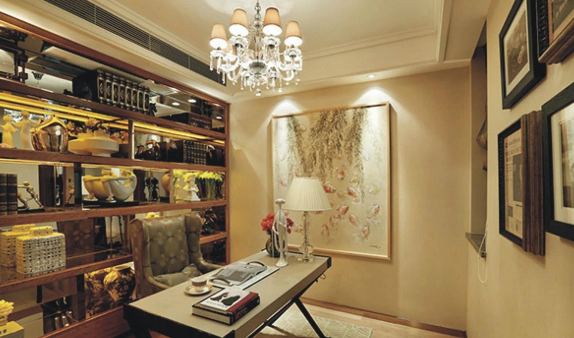 由于受到殖民統治的影響,這種港式裝修風格很多都喜歡營造出一種英式的奢華典雅感覺,更加注重各種華麗裝飾品的使用,最常見的手法就是利用奢華濃烈的金屬色和古典鐵藝搭配而成的裝飾技術,比如在客廳天花板處安裝上枝形、絢麗多彩的水晶材質吊頂、有著精致雕花的窗戶或者藝術氣氛濃厚的掛墻油畫等等,處處彰顯出英倫港風獨有的豪華韻味。